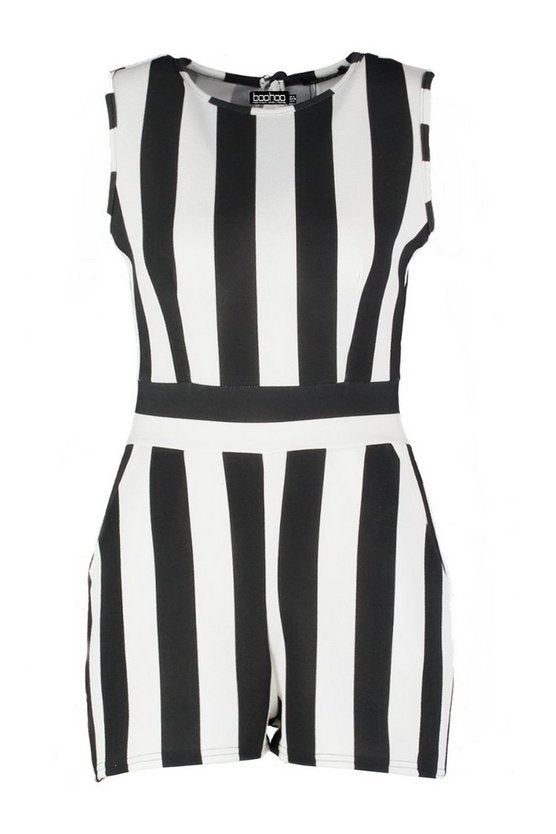 High Neck Stripe Playsuit