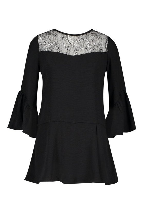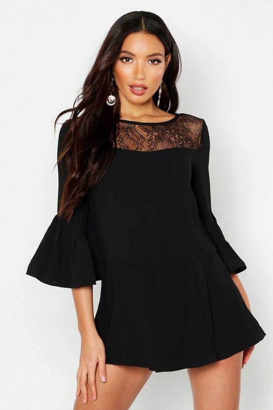Lace Panel Flare Sleeve Playsuit