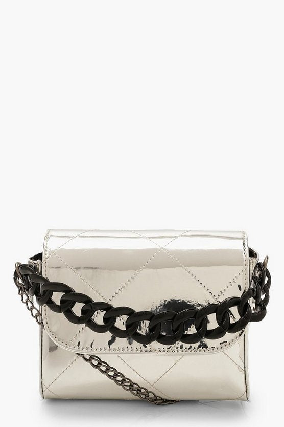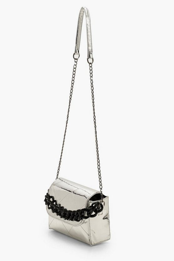 Width: 20cm. Height: 16cm. Patent PU material with metal popper fastening and PU/metal chain strap.
