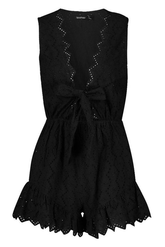 Plunge Front Broderie Anglais Playsuit