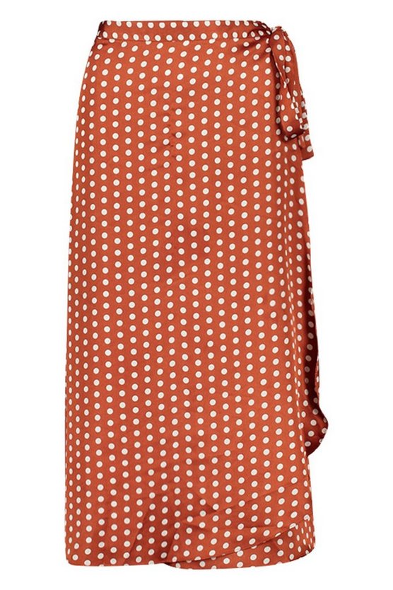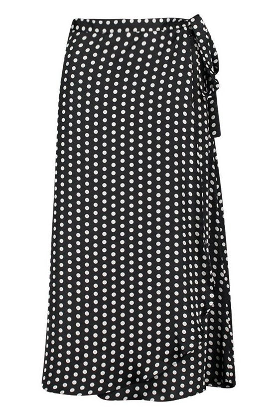 Polka Dot Wrap Front Midi Skirt