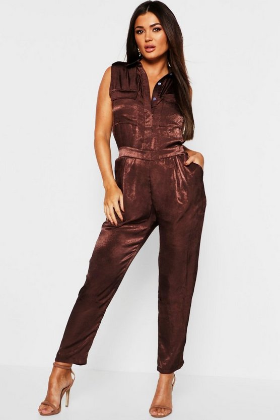 • Load image into Gallery viewer, Satin Utility Cargo Pocket Jumpsuit