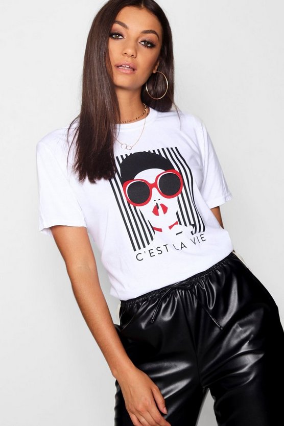 Tall French Slogan Face Print T-Shirt