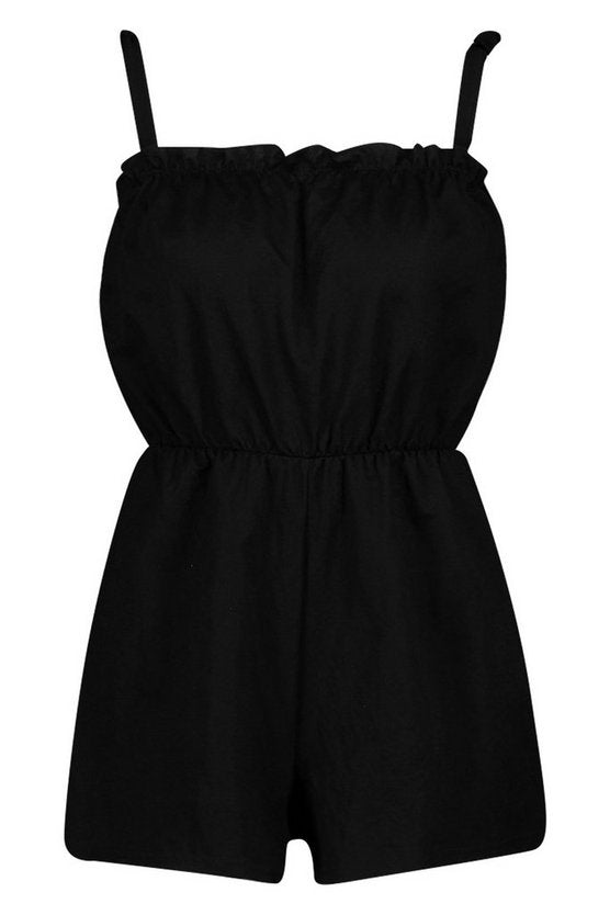 Tie Shoulder Ruffle Linen Look Playsuit