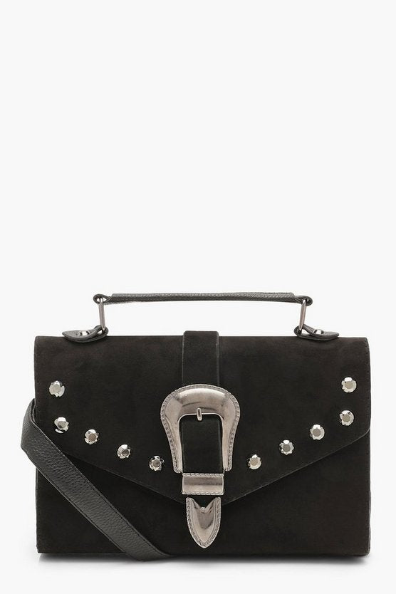 LENGTH:13CM WIDTH:22CM. Suedette Material, Metal Popper Fastening, Metal Stud Detailing.